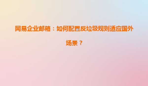 2025-04-26如何配置網(wǎng)易企業(yè)郵箱的反垃圾規(guī)則以適應(yīng)國外場景 隨著國際化業(yè)務(wù)的不斷拓展,越來越多的企業(yè)需要通過電子郵件與海外客戶、合作伙伴進行溝通。而為了確保郵件安全性、減少垃圾郵件的干擾,反垃圾規(guī)則的配置顯得尤為...