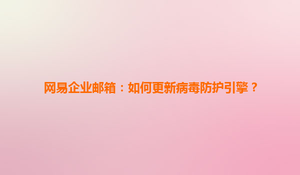 2025-04-26網(wǎng)易企業(yè)郵箱:如何更新病毒防護(hù)引擎? 隨著網(wǎng)絡(luò)安全形勢的日益嚴(yán)峻,企業(yè)面臨的郵件安全威脅也在不斷增加。為了有效地保護(hù)企業(yè)郵件系統(tǒng)免受病毒、惡意軟件和垃圾郵件的侵害,更新病毒防護(hù)引擎顯得尤為重要...