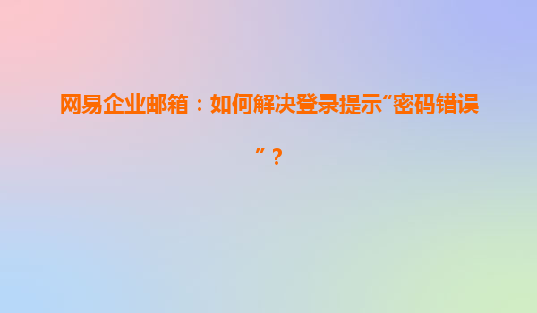 2025-04-26網(wǎng)易企業(yè)郵箱:如何解決登錄提示“密碼錯誤” 網(wǎng)易企業(yè)郵箱是企業(yè)用戶在日常工作中廣泛使用的電子郵件工具,憑借其強(qiáng)大的功能、穩(wěn)定的服務(wù)和高效的安全性,成為了不少公司首選的企業(yè)郵箱解決方案。然而,很多用戶在...