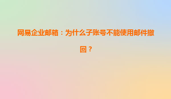 2025-04-26網(wǎng)易企業(yè)郵箱:為什么子賬號不能使用郵件撤回? 隨著互聯(lián)網(wǎng)的快速發(fā)展,企業(yè)溝通也越來越依賴于電子郵件。網(wǎng)易企業(yè)郵箱作為一個廣受歡迎的企業(yè)郵箱服務(wù)提供商,不僅提供了穩(wěn)定高效的郵件服務(wù),還不斷優(yōu)化企業(yè)通...