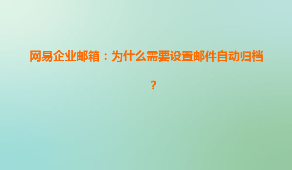 2025-04-26為什么需要設(shè)置郵件自動歸檔?——以網(wǎng)易企業(yè)郵箱為例 在現(xiàn)代企業(yè)中,郵件已經(jīng)成為了溝通、協(xié)作和信息傳遞的重要工具。然而,隨著工作量的增加和郵件數(shù)量的積累,企業(yè)郵箱中存儲的郵件內(nèi)容也越來越多,如何高效...