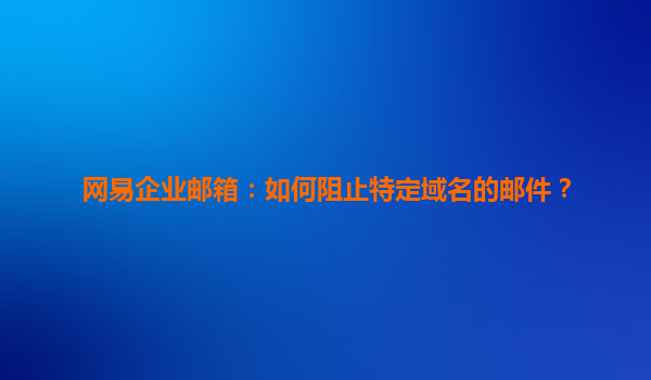 2025-04-26如何阻止特定域名的郵件?——以網(wǎng)易企業(yè)郵箱為例 隨著信息化時代的到來,企業(yè)郵箱已經(jīng)成為了企業(yè)日常運(yùn)營中不可或缺的一部分。在使用企業(yè)郵箱的過程中,很多企業(yè)會遇到垃圾郵件的困擾。為了提升郵件管理的效率,網(wǎng)...