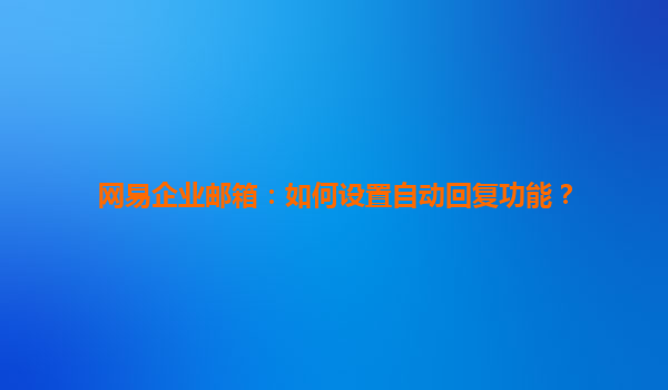 2025-04-24網(wǎng)易企業(yè)郵箱智能分類規(guī)則設(shè)置指南 隨著數(shù)字化辦公的不斷發(fā)展,企業(yè)郵箱的功能也在不斷優(yōu)化,以提高工作效率和溝通便利性。網(wǎng)易企業(yè)郵箱憑借其強(qiáng)大的功能和智能化管理,成為了眾多企業(yè)的首選郵件服務(wù)平臺(tái)。在...