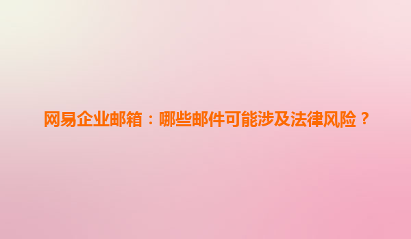2025-04-23網(wǎng)易企業(yè)郵箱:哪些郵件可能涉及法律風(fēng)險(xiǎn)? 在當(dāng)今數(shù)字化時(shí)代,電子郵件已經(jīng)成為企業(yè)日常溝通的重要工具,尤其是在工作環(huán)境中,企業(yè)郵箱更是承載著公司重要信息的載體。網(wǎng)易企業(yè)郵箱作為國(guó)內(nèi)領(lǐng)先的企業(yè)郵箱服務(wù)提供...