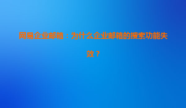 2025-04-23網(wǎng)易企業(yè)郵箱:為什么企業(yè)郵箱的搜索功能失效? 一、網(wǎng)易企業(yè)郵箱的優(yōu)勢(shì) 網(wǎng)易企業(yè)郵箱作為國(guó)內(nèi)領(lǐng)先的企業(yè)郵箱解決方案之一,以其穩(wěn)定的服務(wù)、強(qiáng)大的功能以及高效的用戶體驗(yàn),受到眾多企業(yè)的青睞。首先,網(wǎng)...
