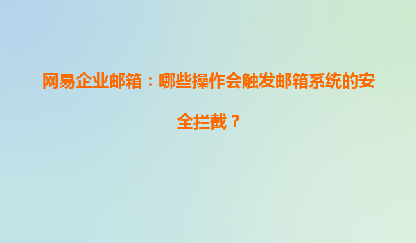 2025-04-23網(wǎng)易企業(yè)郵箱:哪些操作會(huì)觸發(fā)郵箱系統(tǒng)的安全攔截? 網(wǎng)易企業(yè)郵箱作為一種高效、安全的企業(yè)通信工具,已經(jīng)成為許多企業(yè)日常辦公的重要組成部分。隨著企業(yè)信息化的不斷發(fā)展,網(wǎng)絡(luò)安全問題日益嚴(yán)峻。為了保護(hù)企業(yè)的...