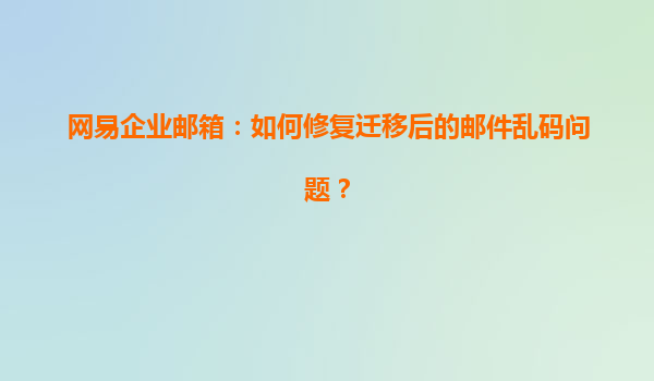 2025-04-23網(wǎng)易企業(yè)郵箱:如何修復(fù)遷移后的郵件亂碼問題 引言 隨著企業(yè)業(yè)務(wù)的發(fā)展,越來越多的公司開始使用企業(yè)郵箱來處理郵件事務(wù)。網(wǎng)易企業(yè)郵箱作為國內(nèi)知名的郵箱服務(wù)平臺,以其強大的功能、穩(wěn)定性和安全性在企業(yè)級...