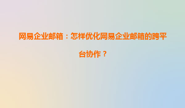 2025-04-20怎樣優(yōu)化網(wǎng)易企業(yè)郵箱的跨平臺(tái)協(xié)作 隨著企業(yè)的信息化程度不斷提高,越來越多的公司選擇使用企業(yè)郵箱來處理日常工作中的電子郵件通信。然而,在跨平臺(tái)協(xié)作過程中,企業(yè)郵箱的使用效果往往受到平臺(tái)間兼容性、設(shè)備適...