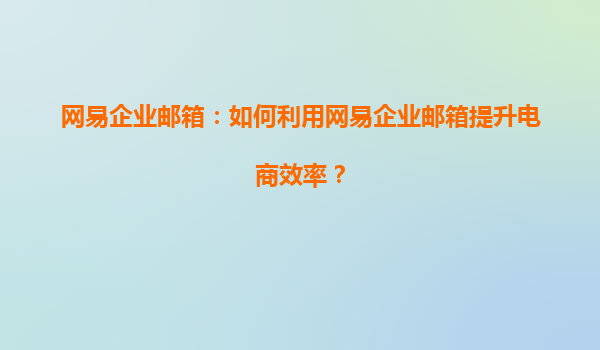 2025-04-20如何利用網(wǎng)易企業(yè)郵箱提升電商效率 在當(dāng)今競(jìng)爭(zhēng)激烈的電商行業(yè)中,提升工作效率和溝通效率是取得成功的關(guān)鍵。網(wǎng)易企業(yè)郵箱作為一款功能強(qiáng)大的電子郵件服務(wù)工具,不僅可以幫助企業(yè)管理郵件,優(yōu)化內(nèi)部溝通,還能在多...
