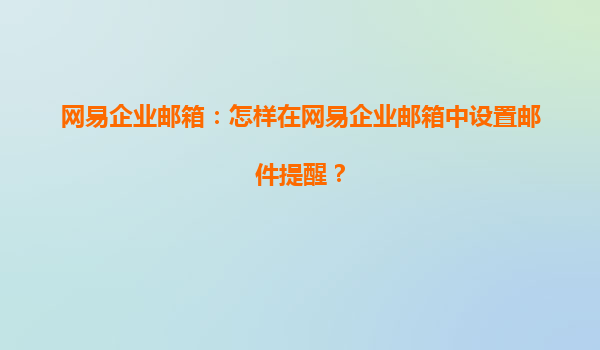 2025-04-20如何在網易企業郵箱中設置郵件提醒? 網易企業郵箱作為一款廣受企業歡迎的郵件管理工具,不僅提供了高效的郵件收發功能,還提供了一些便捷的管理工具,幫助用戶更好地使用郵箱。作為一名經常使用網易企業郵箱的...