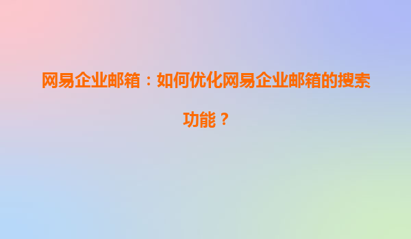 2025-04-20如何優化網易企業郵箱的搜索功能? 在現代企業中,電子郵件作為溝通和協作的重要工具,扮演著至關重要的角色。隨著信息量的增加,如何在海量的郵件中快速找到所需的信息,成為了企業郵箱用戶普遍面臨的挑戰。網易企...