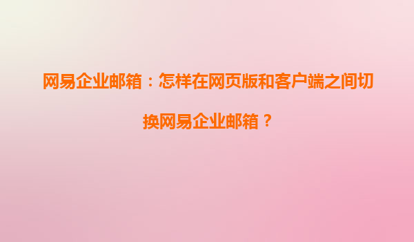 2025-04-18如何在網(wǎng)頁版和客戶端之間切換網(wǎng)易企業(yè)郵箱 網(wǎng)易企業(yè)郵箱作為一款專業(yè)的企業(yè)級郵箱服務(wù),提供了靈活便捷的使用體驗。為了更好地滿足用戶的需求,網(wǎng)易企業(yè)郵箱不僅支持網(wǎng)頁版操作,還支持客戶端軟件,使得用戶可...