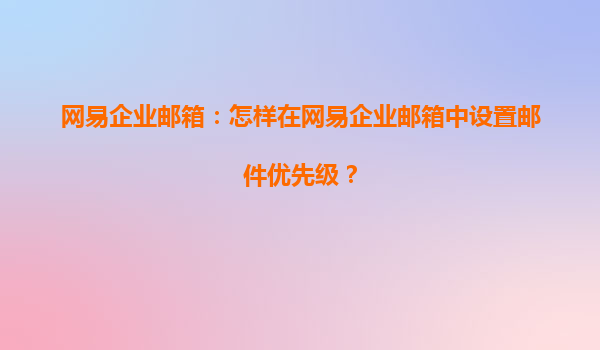 2025-04-17怎樣在網(wǎng)易企業(yè)郵箱中設(shè)置郵件優(yōu)先級? 在如今的職場環(huán)境中,郵件已經(jīng)成為了企業(yè)溝通的重要工具。網(wǎng)易企業(yè)郵箱作為國內(nèi)領(lǐng)先的企業(yè)郵箱服務(wù),因其安全性高、穩(wěn)定性強(qiáng)、功能豐富等優(yōu)勢,受到越來越多企業(yè)的青睞。...