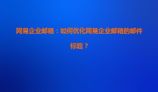 4008-020-360 如何優(yōu)化網(wǎng)易企業(yè)郵箱的郵件標(biāo)題 在現(xiàn)代商務(wù)環(huán)境中,電子郵件已經(jīng)成為公司和員工之間最常用的溝通工具之一。網(wǎng)易企業(yè)郵箱作為一款專為企業(yè)量身打造的郵箱服務(wù)平臺,憑借其高效、穩(wěn)定、安全的特點,受到了...