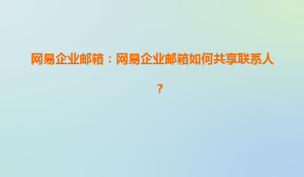 2025-04-17網(wǎng)易企業(yè)郵箱:如何共享聯(lián)系人? 一、網(wǎng)易企業(yè)郵箱概述 隨著企業(yè)規(guī)模的擴(kuò)大,企業(yè)郵件管理需求日益增加。網(wǎng)易企業(yè)郵箱作為國內(nèi)領(lǐng)先的企業(yè)級郵箱服務(wù)平臺,憑借其高效、安全和穩(wěn)定的特點,逐漸成為越來越多企業(yè)的首...
