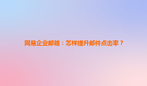 2025-04-16如何提升網易企業(yè)郵箱的郵件點擊率? 隨著數字化時代的不斷發(fā)展,企業(yè)營銷越來越依賴于郵件營銷這一方式。而郵件點擊率是衡量郵件營銷效果的關鍵指標之一。那么,如何利用網易企業(yè)郵箱來提升郵件點擊率呢?本文將...