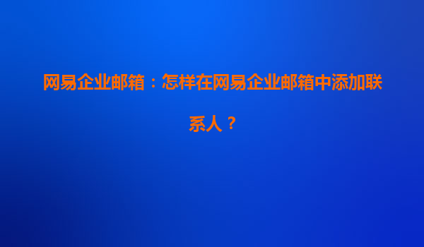 2025-04-16如何在網易企業(yè)郵箱中添加聯(lián)系人 網易企業(yè)郵箱作為一款功能強大的企業(yè)級通訊工具,廣泛應用于各類企業(yè)和組織中。它不僅能夠提供高效的郵件服務,還具備強大的聯(lián)系人管理功能,幫助企業(yè)內部溝通更順暢。本文將詳...
