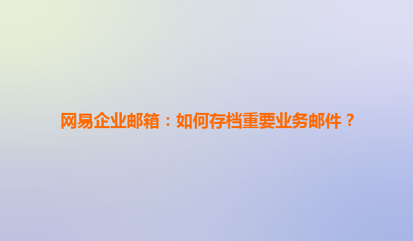 2025-04-16如何存檔重要業(yè)務郵件?—結合網易企業(yè)郵箱與網易企業(yè)郵箱代理商的優(yōu)勢 在日常的工作中,企業(yè)的郵件往往承載著重要的業(yè)務信息。為了確保這些信息的安全性和長期可用性,存檔郵件成為了一項至關重要的工作。通過使用...