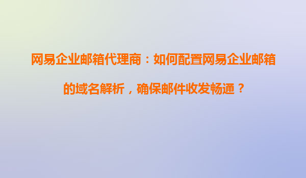 2025-11-01網(wǎng)易企業(yè)郵箱代理商指南:域名解析配置全流程 作為國(guó)內(nèi)領(lǐng)先的企業(yè)郵箱服務(wù)商,網(wǎng)易企業(yè)郵箱憑借其穩(wěn)定性、安全性和易用性,成為眾多企業(yè)的首選。而想要充分發(fā)揮網(wǎng)易企業(yè)郵箱的優(yōu)勢(shì),第一步就是正確配置域名解析。本...
