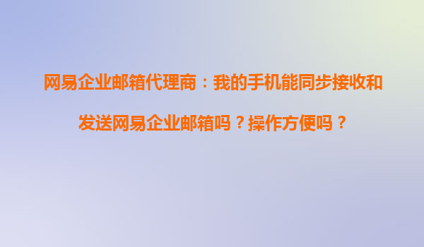 2025-11-01網(wǎng)易企業(yè)郵箱代理商全面解析:手機(jī)同步收發(fā)郵件操作指南與優(yōu)勢(shì)分析 一、手機(jī)能否同步接收和發(fā)送網(wǎng)易企業(yè)郵箱? 作為網(wǎng)易企業(yè)郵箱代理商,我們明確回答:完全可以。網(wǎng)易企業(yè)郵箱提供全面的移動(dòng)端支持,...