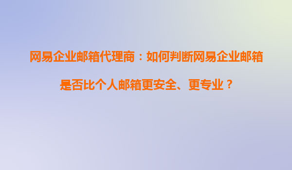 2025-11-01網(wǎng)易企業(yè)郵箱代理商:如何判斷網(wǎng)易企業(yè)郵箱是否比個(gè)人郵箱更安全、更專業(yè)? 一、安全性與專業(yè)性的核心差異 在數(shù)字化辦公時(shí)代,企業(yè)郵箱的安全性和專業(yè)性直接影響企業(yè)運(yùn)營(yíng)效率和數(shù)據(jù)安全。網(wǎng)易企業(yè)郵箱作為...