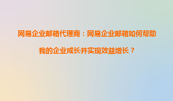 2025-11-01網(wǎng)易企業(yè)郵箱代理商:網(wǎng)易企業(yè)郵箱如何幫助我的企業(yè)成長(zhǎng)并實(shí)現(xiàn)效益增長(zhǎng)? 一、企業(yè)郵箱在現(xiàn)代商業(yè)中的重要性 在數(shù)字化時(shí)代,企業(yè)郵箱已成為企業(yè)日常運(yùn)營(yíng)不可或缺的工具。它不僅代表著企業(yè)的專業(yè)形象,更是內(nèi)部溝通...