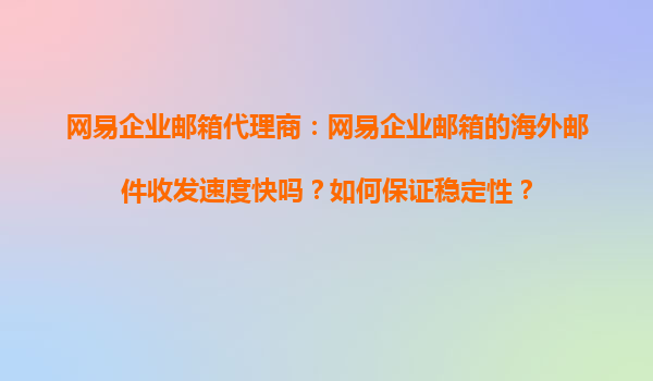 2025-11-02網(wǎng)易企業(yè)郵箱代理商:網(wǎng)易企業(yè)郵箱的海外郵件收發(fā)速度快嗎?如何保證穩(wěn)定性? 在全球化商業(yè)環(huán)境中,企業(yè)郵件作為日常溝通的重要工具,其收發(fā)速度和穩(wěn)定性直接影響企業(yè)運(yùn)營(yíng)效率。尤其是對(duì)于頻繁與海外客戶或合作...