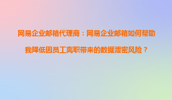 2025-11-01網(wǎng)易企業(yè)郵箱代理商:網(wǎng)易企業(yè)郵箱如何幫助降低因員工離職帶來(lái)的數(shù)據(jù)泄密風(fēng)險(xiǎn)? 引言:?jiǎn)T工離職帶來(lái)的數(shù)據(jù)安全挑戰(zhàn) 在企業(yè)運(yùn)營(yíng)過(guò)程中,員工流動(dòng)是不可避免的現(xiàn)象。然而,員工離職往往伴...