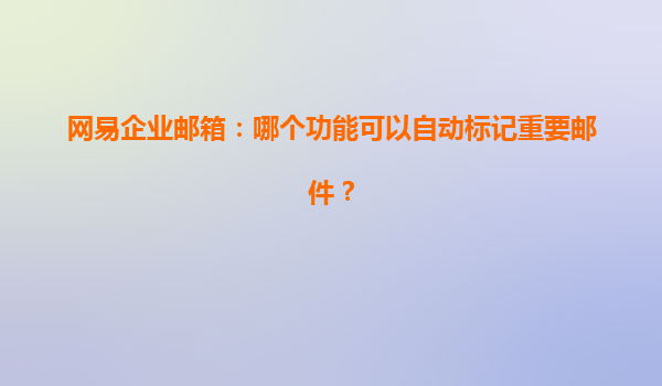 2025-04-12網(wǎng)易企業(yè)郵箱的自動(dòng)標(biāo)記重要郵件功能 在現(xiàn)代企業(yè)的日常工作中,電子郵件已經(jīng)成為了信息傳遞的主要方式。企業(yè)郵箱不僅僅是個(gè)人與外界聯(lián)系的工具,更是企業(yè)內(nèi)部溝通、合作的紐帶。網(wǎng)易企業(yè)郵箱憑借其強(qiáng)大的功能和...