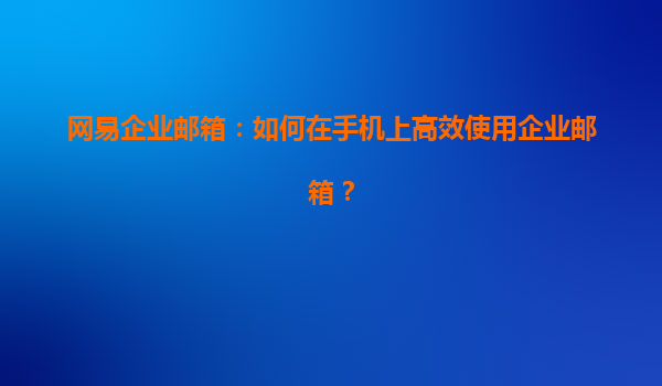 2025-04-12如何在手機(jī)上高效使用網(wǎng)易企業(yè)郵箱 隨著企業(yè)信息化進(jìn)程的不斷加快,企業(yè)郵箱已經(jīng)成為企業(yè)日常辦公中不可或缺的一部分。而隨著智能手機(jī)的普及,企業(yè)員工可以隨時(shí)隨地通過(guò)手機(jī)管理自己的郵件,提升工作效率。在...