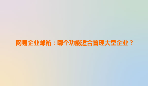 2025-04-12網(wǎng)易企業(yè)郵箱:適合管理大型企業(yè)的功能 隨著信息化時(shí)代的不斷發(fā)展,企業(yè)對(duì)高效、便捷的通訊工具的需求日益增加。郵箱作為日常工作中最為重要的溝通工具之一,已經(jīng)不再局限于簡(jiǎn)單的收發(fā)郵件功能,更多的是向著智...