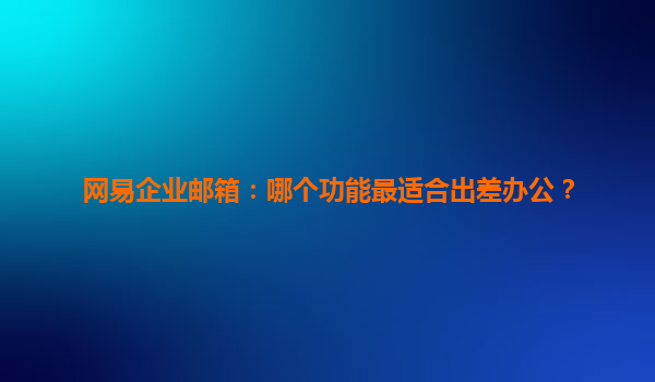 2025-04-12網(wǎng)易企業(yè)郵箱:哪個(gè)功能最適合出差辦公? 隨著科技的進(jìn)步,現(xiàn)代職場(chǎng)的工作方式變得越來(lái)越靈活,尤其是出差辦公成為許多公司員工的日常工作狀態(tài)。在這種情況下,如何高效處理工作郵件、協(xié)調(diào)事務(wù),成為了出差人員...