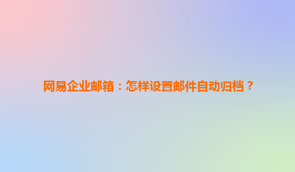 2025-04-12網(wǎng)易企業(yè)郵箱:怎樣設(shè)置郵件自動(dòng)歸檔? 隨著企業(yè)信息化的不斷發(fā)展,電子郵件已成為公司日常工作中不可或缺的溝通工具。為了確保郵件數(shù)據(jù)的安全性與管理的便捷性,很多企業(yè)選擇使用網(wǎng)易企業(yè)郵箱來(lái)提升工作效率。而在...