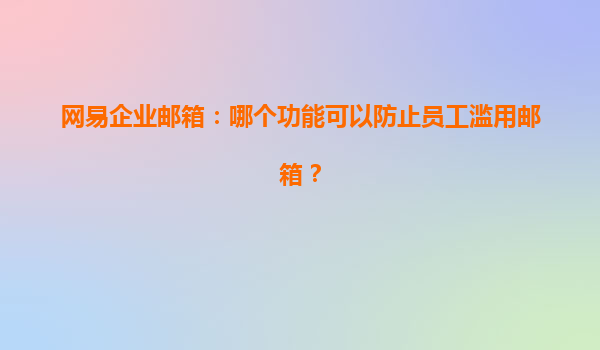 2025-04-12網(wǎng)易企業(yè)郵箱:哪個(gè)功能可以防止員工濫用郵箱? 隨著信息化時(shí)代的到來(lái),企業(yè)在日常辦公中越來(lái)越依賴于郵箱來(lái)處理工作事務(wù)。特別是對(duì)于企業(yè)的郵件系統(tǒng)來(lái)說(shuō),不僅要保證高效的通訊,還要防止員工濫用郵箱資源。網(wǎng)...