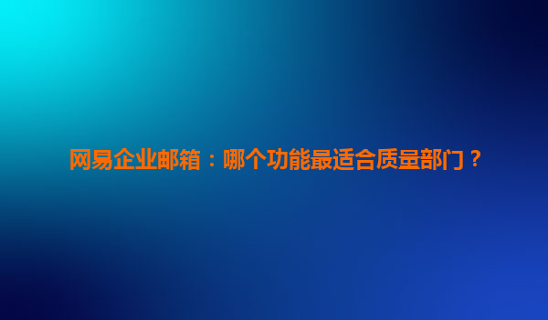 2025-04-08網(wǎng)易企業(yè)郵箱:哪個功能最適合質(zhì)量部門? 在現(xiàn)代企業(yè)中,質(zhì)量部門承擔著確保產(chǎn)品和服務符合標準的重要職責。為了提升工作效率和溝通質(zhì)量,選擇一款合適的企業(yè)郵箱顯得尤為重要。網(wǎng)易企業(yè)郵箱憑借其多項優(yōu)勢,成為了...