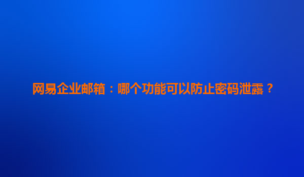 2025-04-08網(wǎng)易企業(yè)郵箱:哪個功能可以防止密碼泄露? 隨著信息技術(shù)的飛速發(fā)展,電子郵件已成為企業(yè)內(nèi)部和外部溝通的重要工具。然而,隨著網(wǎng)絡攻擊的日益增多,郵箱密碼泄露的風險也在不斷增加。為了保障企業(yè)信息的安全,...