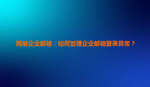 4008-020-360 網(wǎng)易企業(yè)郵箱:如何管理企業(yè)郵箱登錄異常? 網(wǎng)易企業(yè)郵箱的優(yōu)勢 網(wǎng)易企業(yè)郵箱作為國內(nèi)領先的企業(yè)郵箱服務提供商,憑借其穩(wěn)定可靠的服務和豐富的功能,贏得了眾多企業(yè)用戶的信賴。以下是網(wǎng)易企業(yè)郵箱的一些主要...