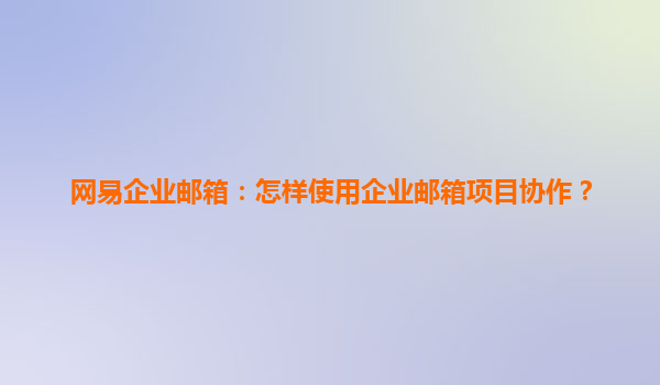 2025-04-08網(wǎng)易企業(yè)郵箱:怎樣使用企業(yè)郵箱項目協(xié)作? 在當今快速發(fā)展的商業(yè)環(huán)境中,企業(yè)需要高效的溝通和協(xié)作工具來保持競爭力。網(wǎng)易企業(yè)郵箱以其強大的功能和可靠的服務成為眾多企業(yè)的首選。本文將探討如何使用網(wǎng)易企業(yè)...