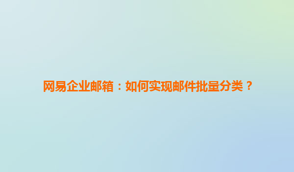 2025-04-08網(wǎng)易企業(yè)郵箱:實現(xiàn)郵件批量分類的方法 在現(xiàn)代企業(yè)中,電子郵件是溝通和協(xié)作的重要工具。然而,隨著郵件數(shù)量的不斷增加,如何高效地管理和分類郵件成為了一項挑戰(zhàn)。網(wǎng)易企業(yè)郵箱作為國內(nèi)領先的企業(yè)郵箱服務提供...