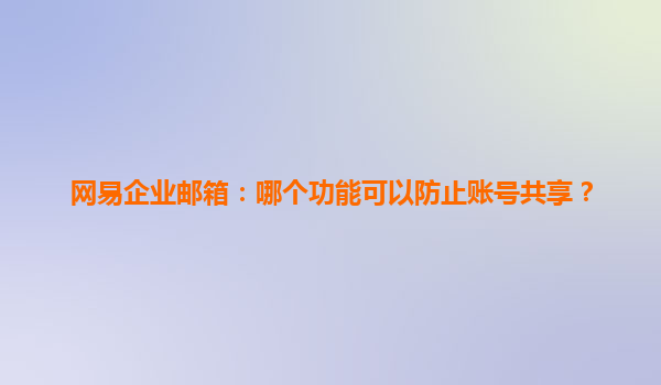 2025-04-07網(wǎng)易企業(yè)郵箱防止賬號(hào)共享的功能及其優(yōu)勢(shì)分析 在當(dāng)今信息化快速發(fā)展的時(shí)代,企業(yè)郵箱成為企業(yè)通信不可或缺的工具。網(wǎng)易企業(yè)郵箱作為市場(chǎng)上的佼佼者,不僅提供穩(wěn)定的郵件服務(wù),還特別增設(shè)了多項(xiàng)功能來防止賬號(hào)共...