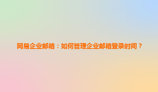 2025-04-07如何管理網(wǎng)易企業(yè)郵箱的登錄時(shí)間 在當(dāng)今數(shù)字化辦公的時(shí)代,企業(yè)郵箱已成為企業(yè)日常運(yùn)營(yíng)中不可或缺的一部分。網(wǎng)易企業(yè)郵箱作為國(guó)內(nèi)知名的企業(yè)郵箱服務(wù)提供商,以其穩(wěn)定、安全和高效的特點(diǎn),受到眾多企業(yè)的青睞。...