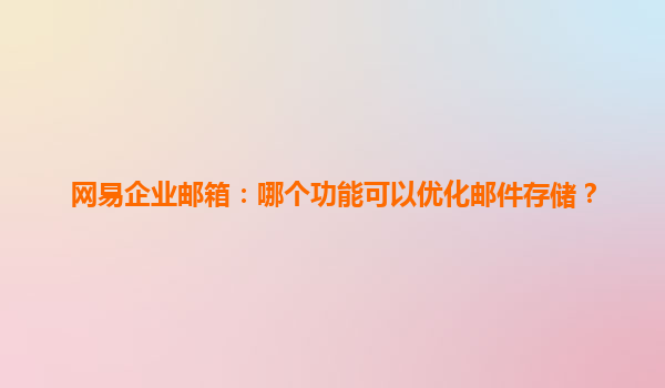 4008-020-360 網(wǎng)易企業(yè)郵箱:優(yōu)化郵件存儲(chǔ)的功能探索 引言 在信息化快速發(fā)展的今天,企業(yè)郵箱成為企業(yè)通信不可或缺的工具。網(wǎng)易企業(yè)郵箱以其穩(wěn)定的性能、優(yōu)秀的安全性能和良好的用戶體驗(yàn),成為眾多企業(yè)的首選。本文將探討...