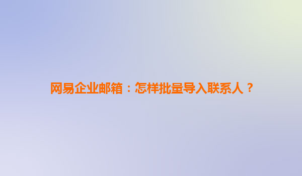 2025-04-03如何在網(wǎng)易企業(yè)郵箱中批量導(dǎo)入聯(lián)系人 在現(xiàn)代企業(yè)管理中,電子郵件是溝通和日常運(yùn)作不可或缺的工具。網(wǎng)易企業(yè)郵箱作為一款專業(yè)的商務(wù)郵箱服務(wù),提供了高效、安全的郵件處理能力,特別是在處理大量聯(lián)系人信息時(shí)顯...