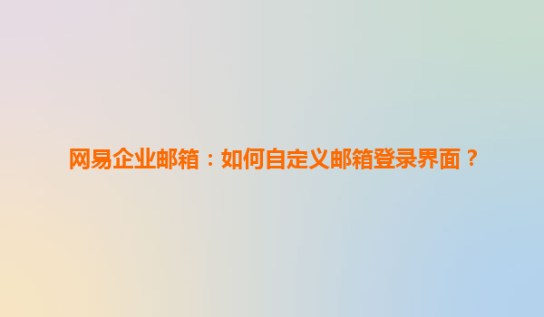 4008-020-360 以下是一篇關(guān)于如何自定義網(wǎng)易企業(yè)郵箱登錄界面的文章,結(jié)合了網(wǎng)易企業(yè)郵箱及其代理商的優(yōu)勢(shì),并以HTML格式呈現(xiàn): 如何自定義網(wǎng)易企業(yè)郵箱登錄界面 網(wǎng)易企業(yè)郵箱作為一種專業(yè)的商務(wù)通信工具,不僅提供穩(wěn)...