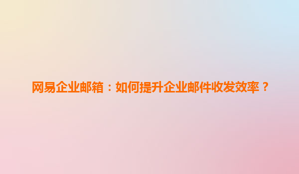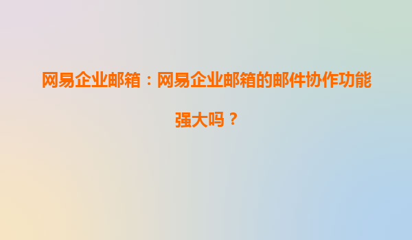 2025-04-01網(wǎng)易企業(yè)郵箱:網(wǎng)易企業(yè)郵箱的郵件協(xié)作功能強(qiáng)大嗎? 在當(dāng)今數(shù)字化時(shí)代,企業(yè)之間的溝通效率對(duì)于提升工作效率至關(guān)重要。尤其是在信息化管理和團(tuán)隊(duì)協(xié)作上,企業(yè)郵箱的功能變得尤為重要。作為中國(guó)知名互聯(lián)網(wǎng)公司,網(wǎng)易...
