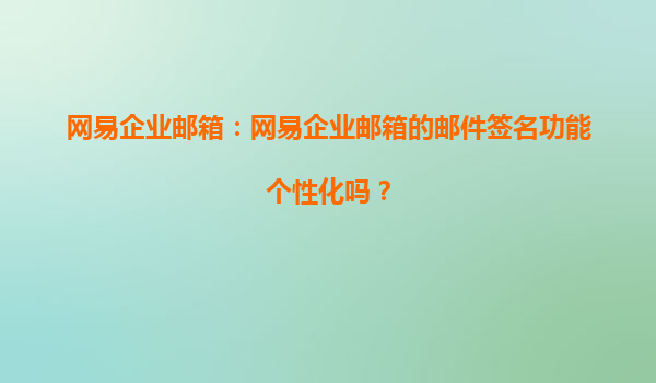 2025-04-01網(wǎng)易企業(yè)郵箱:網(wǎng)易企業(yè)郵箱的郵件簽名功能個(gè)性化嗎? 隨著企業(yè)的數(shù)字化轉(zhuǎn)型,企業(yè)郵箱已成為公司溝通和信息傳遞的核心工具之一。作為國(guó)內(nèi)知名的企業(yè)郵箱服務(wù)提供商,網(wǎng)易企業(yè)郵箱憑借其穩(wěn)定的服務(wù)和豐富的功能,逐...