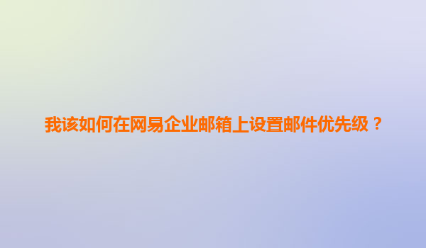 2025-03-26如何在網(wǎng)易企業(yè)郵箱上設(shè)置郵件優(yōu)先級(jí) 隨著企業(yè)通訊需求的不斷增長,郵件作為日常工作中的重要溝通工具,已經(jīng)成為了企業(yè)管理和協(xié)作的核心。為了更高效地管理企業(yè)郵件,網(wǎng)易企業(yè)郵箱提供了郵件優(yōu)先級(jí)的設(shè)置功能,...