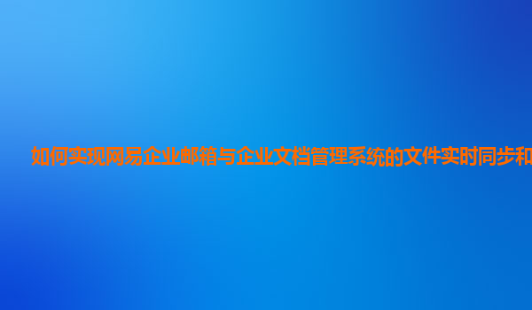 2024-12-04如何實(shí)現(xiàn)網(wǎng)易企業(yè)郵箱與企業(yè)文檔管理系統(tǒng)的文件實(shí)時(shí)同步和共享? 在現(xiàn)代企業(yè)日常工作中,電子郵件和文檔管理系統(tǒng)的高效協(xié)作至關(guān)重要。隨著企業(yè)信息化建設(shè)的逐步深入,企業(yè)郵箱和文檔管理系統(tǒng)的文件實(shí)時(shí)同步與共享功...