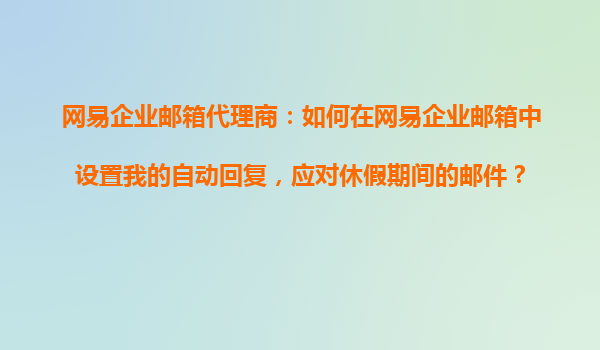2025-10-29網(wǎng)易企業(yè)郵箱代理商:如何在網(wǎng)易企業(yè)郵箱中設(shè)置我的自動(dòng)回復(fù),應(yīng)對(duì)休假期間的郵件? 一、網(wǎng)易企業(yè)郵箱自動(dòng)回復(fù)功能的重要性 在職場中,休假是每個(gè)人都會(huì)遇到的情況。但即便在休假期間,及時(shí)響應(yīng)郵件仍然...