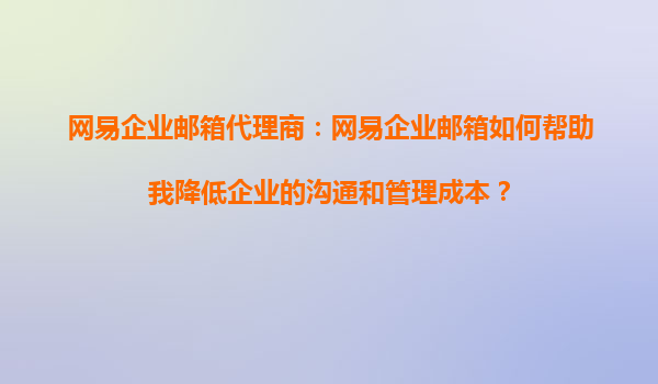 2025-10-29網(wǎng)易企業(yè)郵箱代理商:網(wǎng)易企業(yè)郵箱如何幫助我降低企業(yè)的溝通和管理成本? 在現(xiàn)代企業(yè)中,高效的溝通和管理是企業(yè)成功的關(guān)鍵因素之一。然而,傳統(tǒng)的郵件系統(tǒng)和溝通方式往往無法滿足企業(yè)快速發(fā)展的需求,運(yùn)營成...